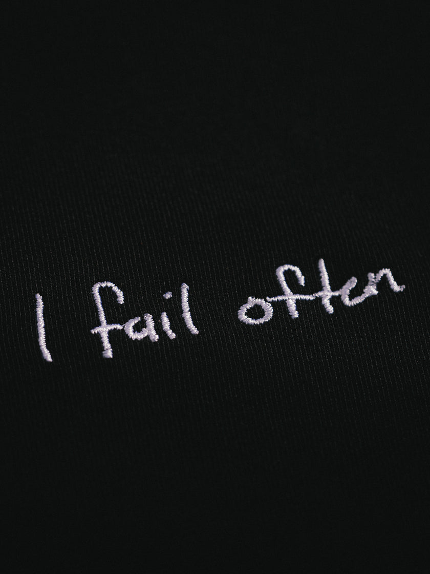 I worked with two great graphic designers before realizing that the best "font" out there is my dad's handwriting. So I asked him to write "I Fail Often" on a piece of paper and here we are.